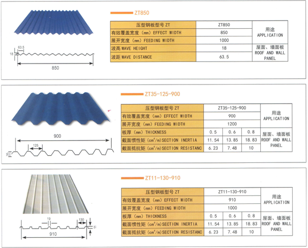 瓦型:430 750 840 850 900 910等各種瓦型齊全。